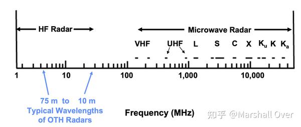 频谱(高频和微波波段):高频(HF)的电磁传播与微波频率的电磁传播非常不同。