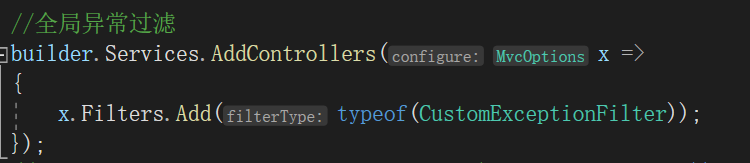 全局异常过滤器,需要在Program.cs进行注册: