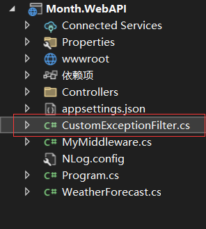 首先,在WebApi中创建一个名为 CustomExceptionFilter的实体类