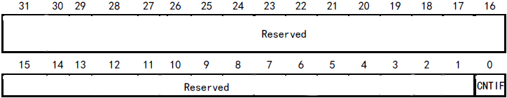 (2)第0位(CNTIF)为计数值比较标志位,写0 清除,写1 无效。值为1时表示向上计数已达到比较值,值为0时表示未达到比较值。该位复位值为0。