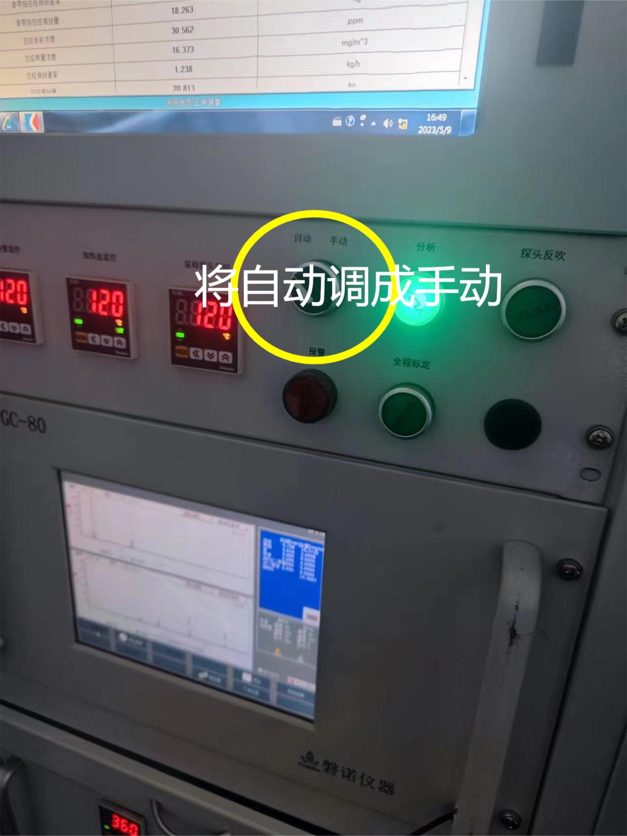 检查检测数据是否准确,不准确校正,准确就等5组数数据出来之后把标气关掉,按钮反顺序依次还原