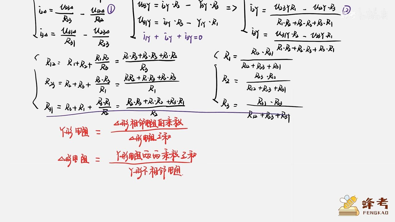 △形电阻 = Y形电阻两两乘积之和 / Y形不相邻电阻