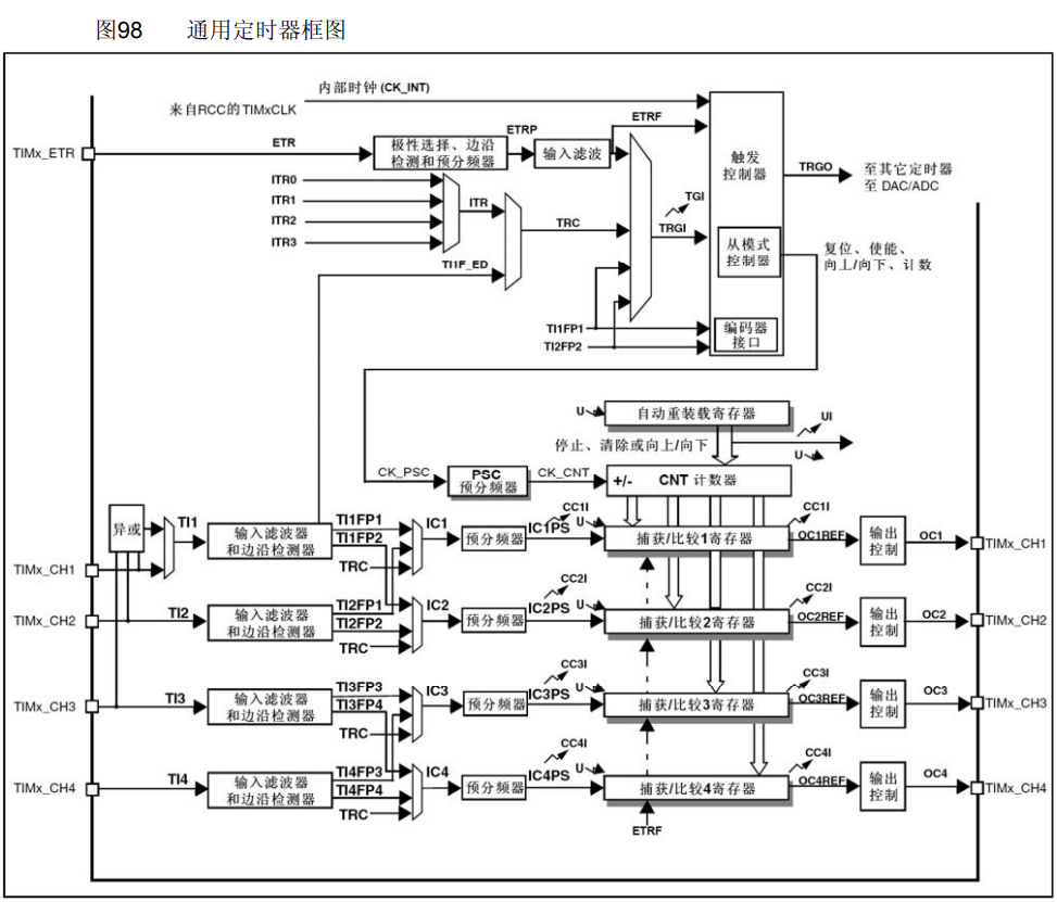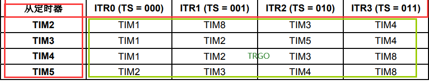 ITR0-3 来自其他定时器的信号 (可以接受其他定时器的TRGO信号)