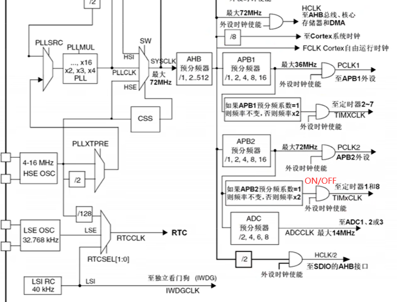 先启动内部8M RC时钟,再启动外部8M石英时钟,通过PLL锁相环倍频到72M,稳定后作为系统时钟