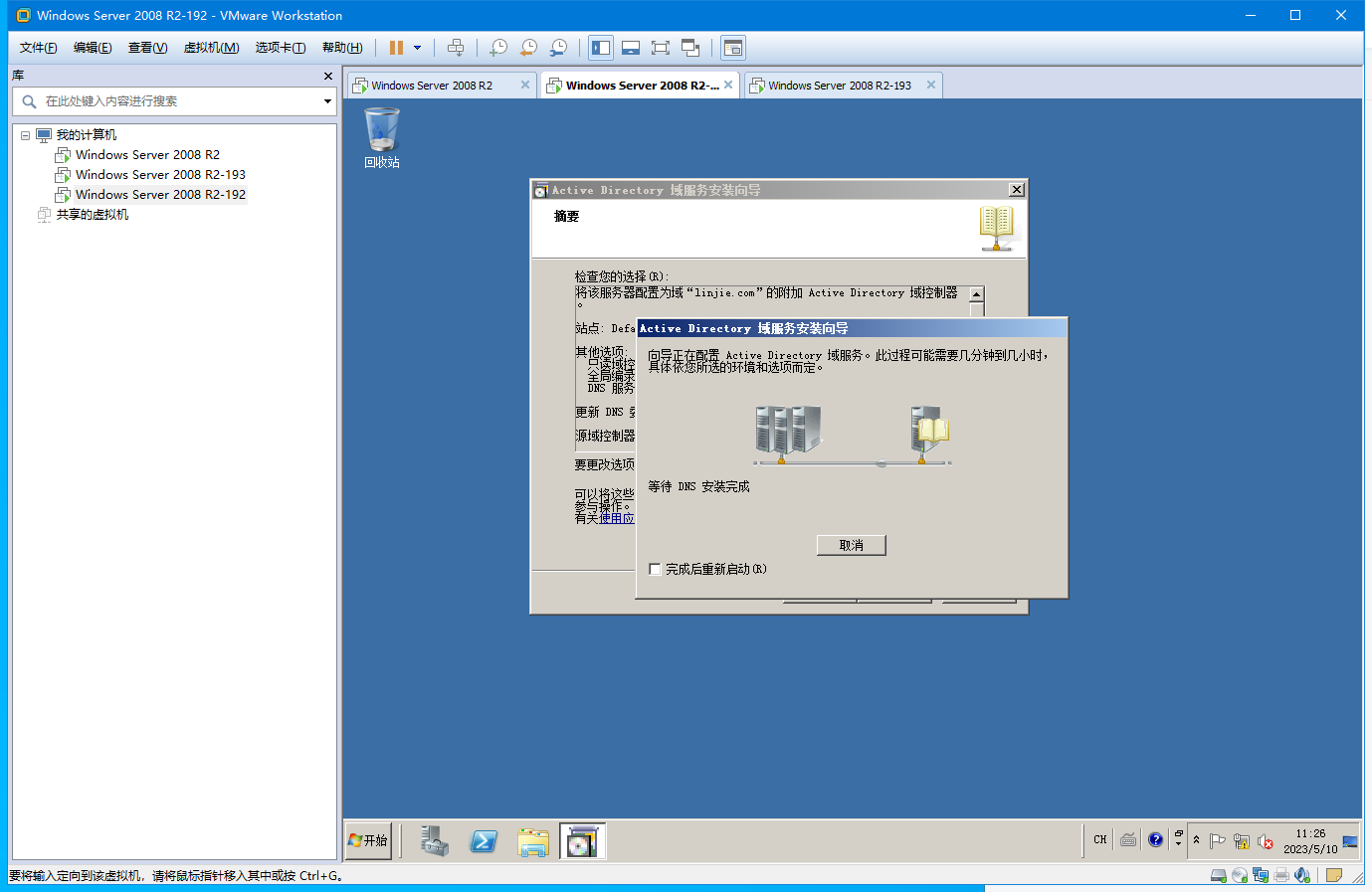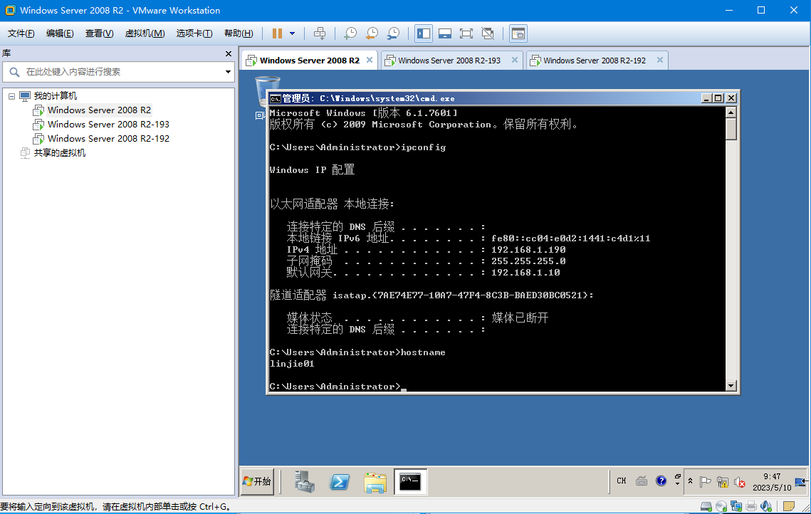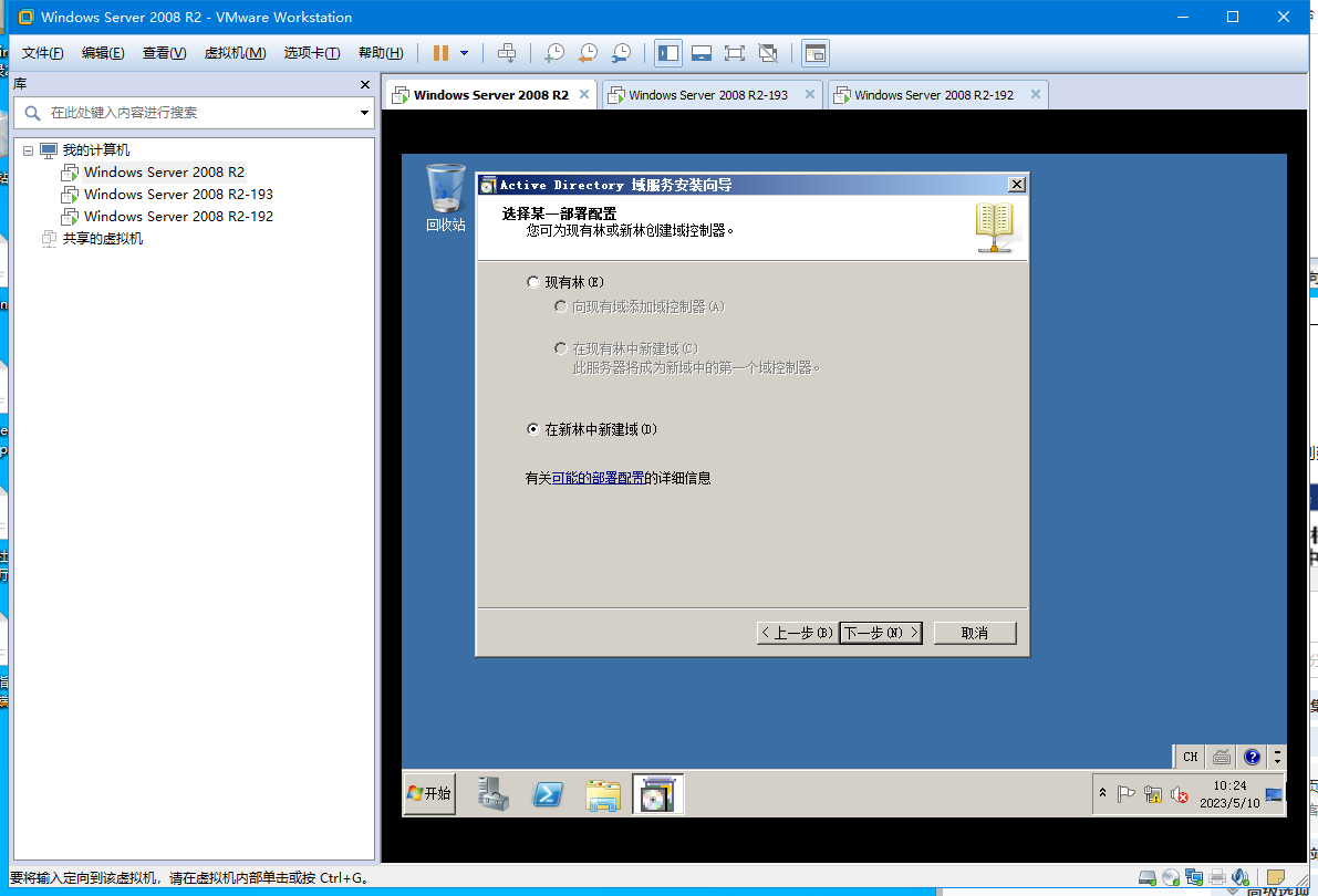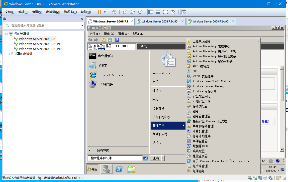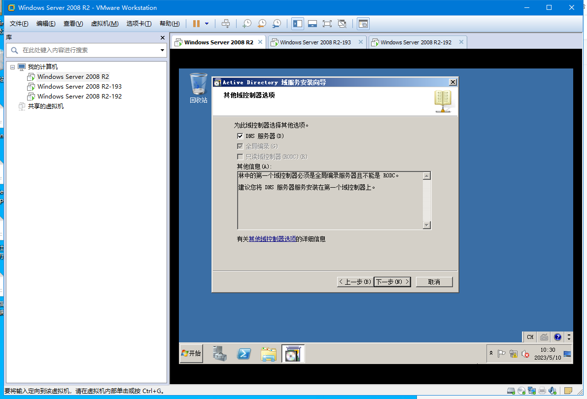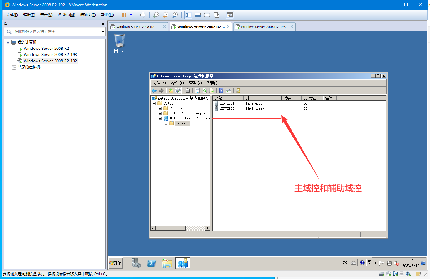 在虚拟机上准备三台Windows Server 2008 R2,一台作为主域控,一台作为额外域控辅域控,一台作为客户端。