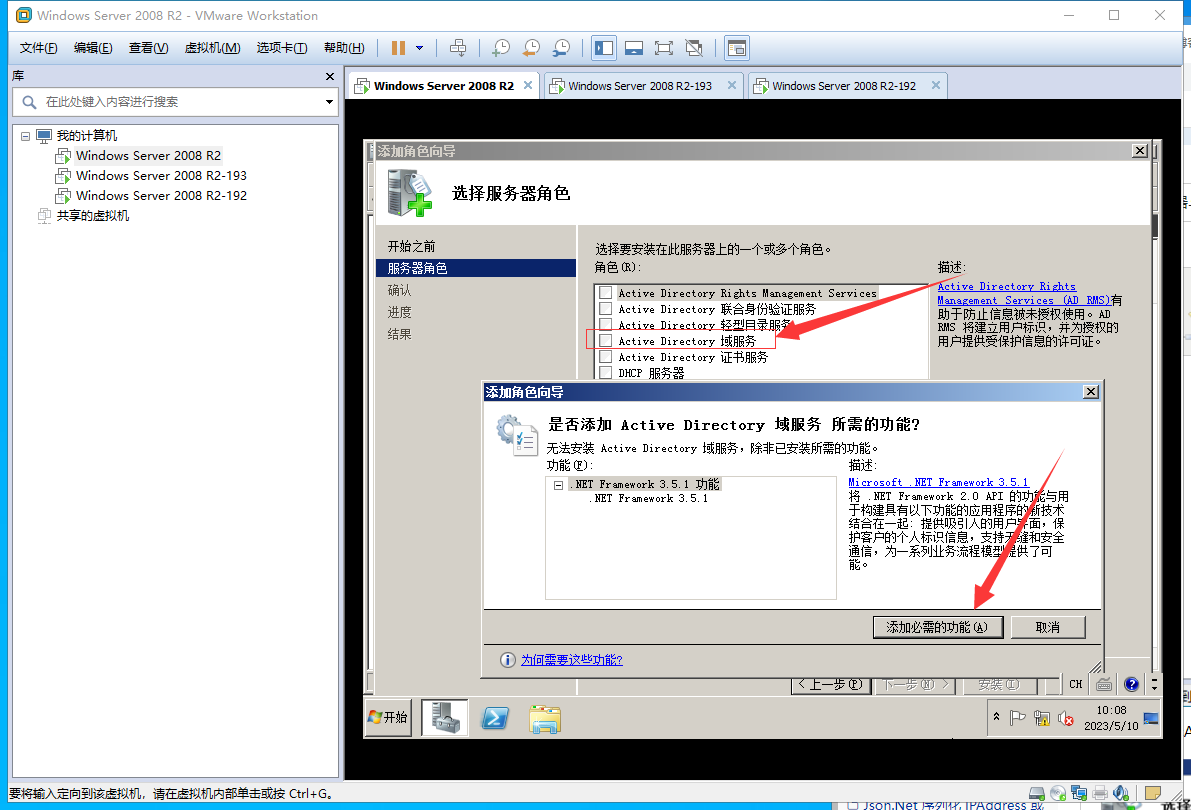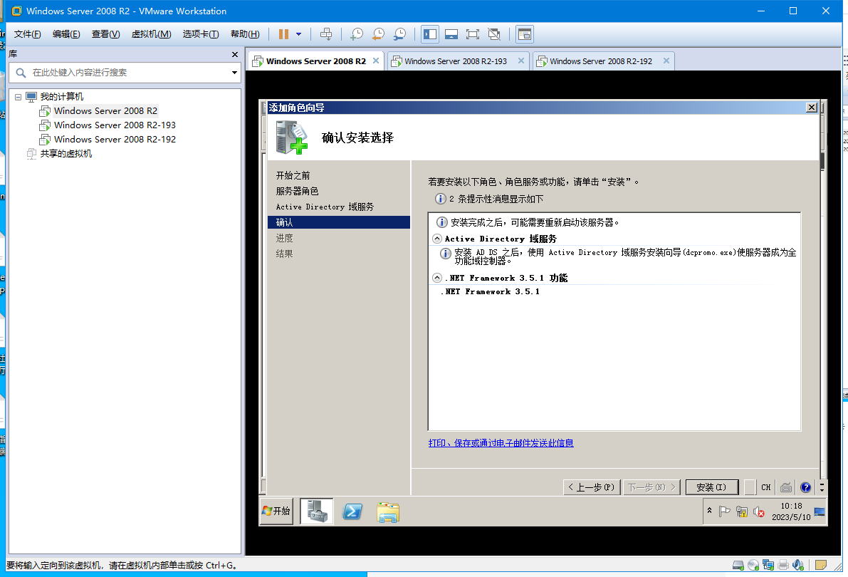 2、选择 Active Directory 域服务,弹出安装 .NET Framework 3.5.1 功能 点击安装,安装完成之后 选择下一步