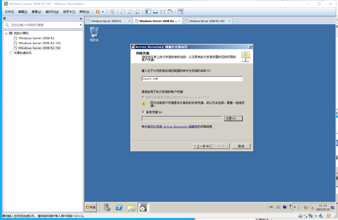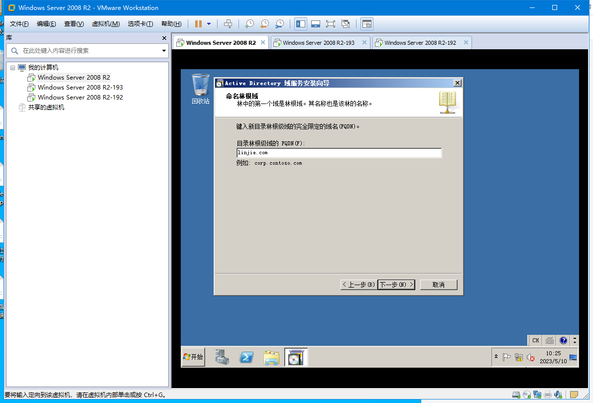 3、输入域名linjie.com,与主域控上的域名保持一致。