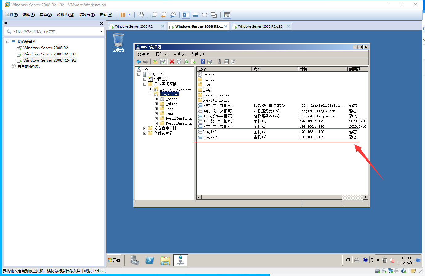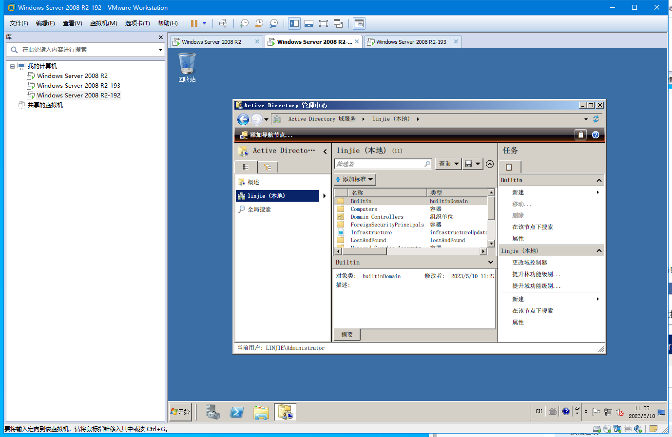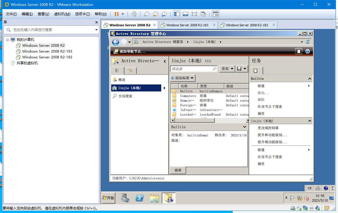 说明域控服务已经起作用了,因为域名是 linjie.com