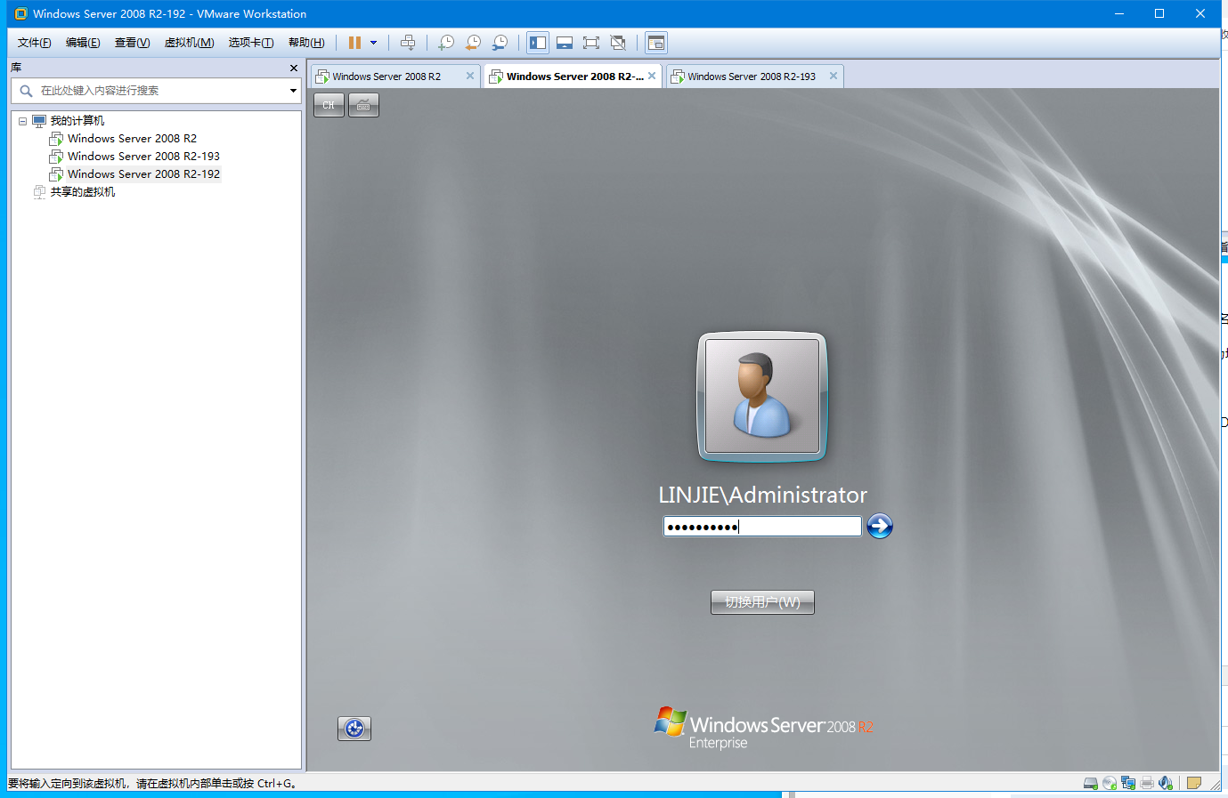 12、重启之后,可以看到,用户名已经变了,原来是Administrator》LINJIE\Administrator