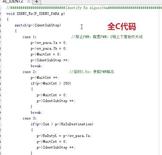 三相感应异步电机的参数辨识,大厂成熟的C代码,附赠仿真模型: