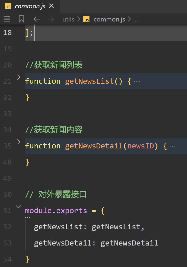 utils中的common.js文件,有两个自定义函数:getNewsList——获取新闻列表getNewsDetail——获取新闻内容