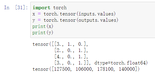 上面的inputs及outputs不能直接使用torch.tensor(inputs)或torch.tensor(outputs)转换成tensor,要使用inputs.values以及outputs.values.