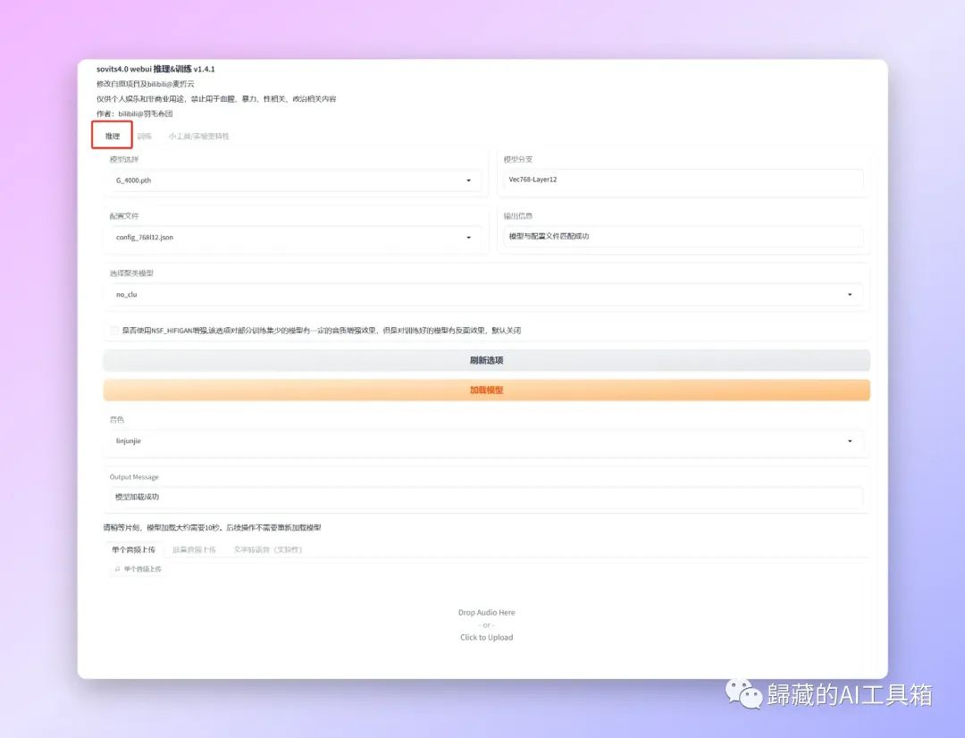 首先是模型使用的部分,如果你没有兴趣训练自己的模型只想使用别人训练好的模型尝鲜的话只看这部分就可以了,这部分主要分为三个本部分原始声音的处理、推理过程以及最后的音轨合并。