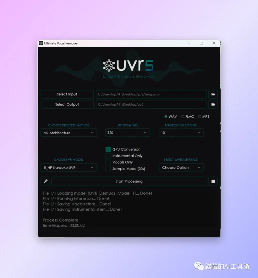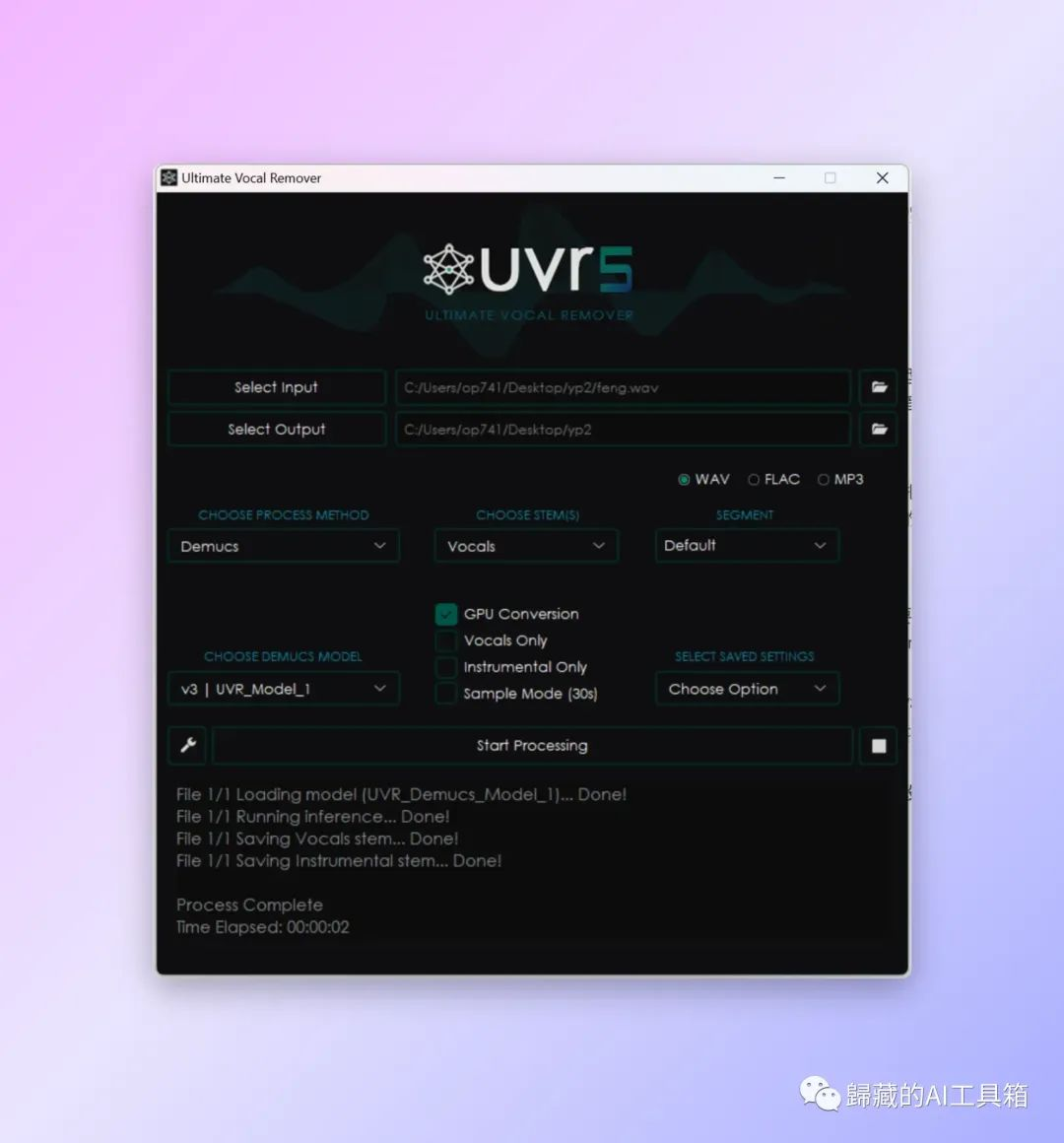 这里我们还是使用UVR_v5.5.0这个软件每个素材都进行两次处理。