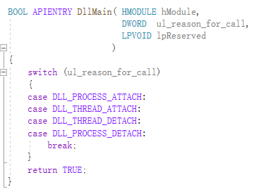 DLL_PROCESS_ATTACH:当DLL被进程 <<第一次>> 调用时,导致DllMain函数被调用,同时ul_reason_for_call的值为DLL_PROCESS_ATTACH,