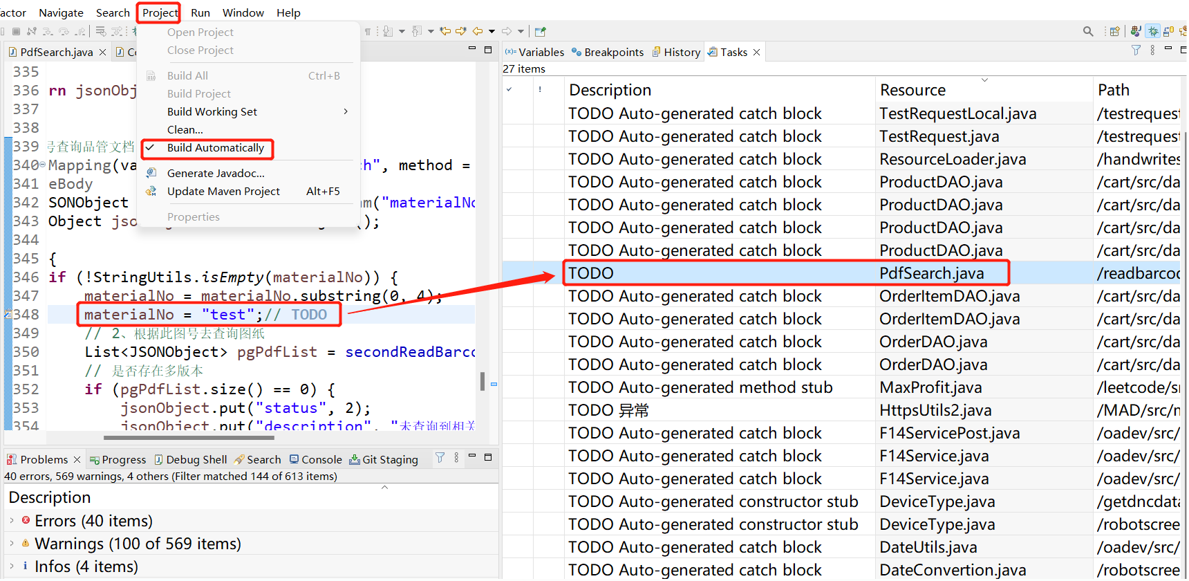 最近在做一个品管文档查询的功能,由于项目未部署,先本地测试,degug断点修改变量的值,但是每次请求都要改一次,太麻烦。所以直接在代码里面把变量的值改了,但是项目部署前要记得注释掉,这里就用到了TODO标签,防止自己忘掉。