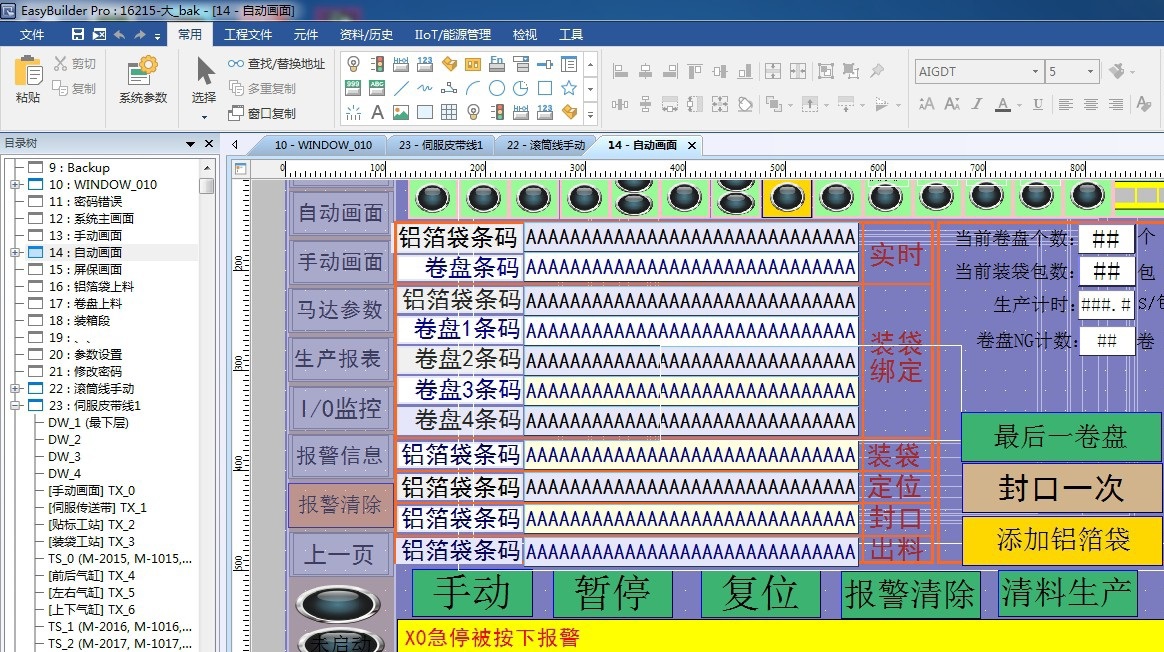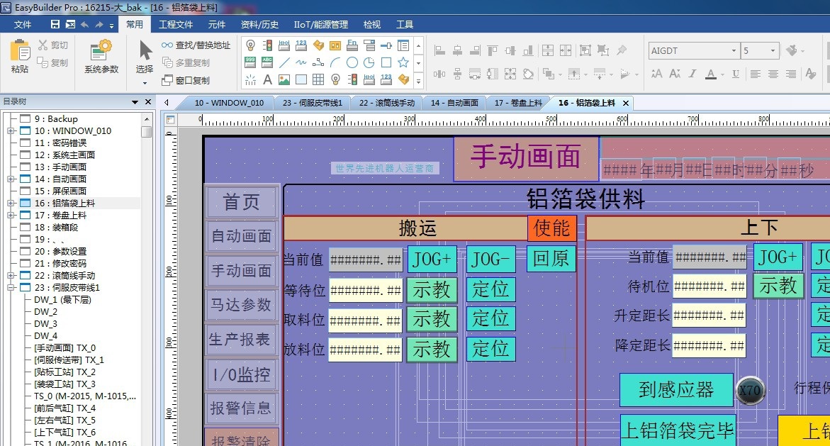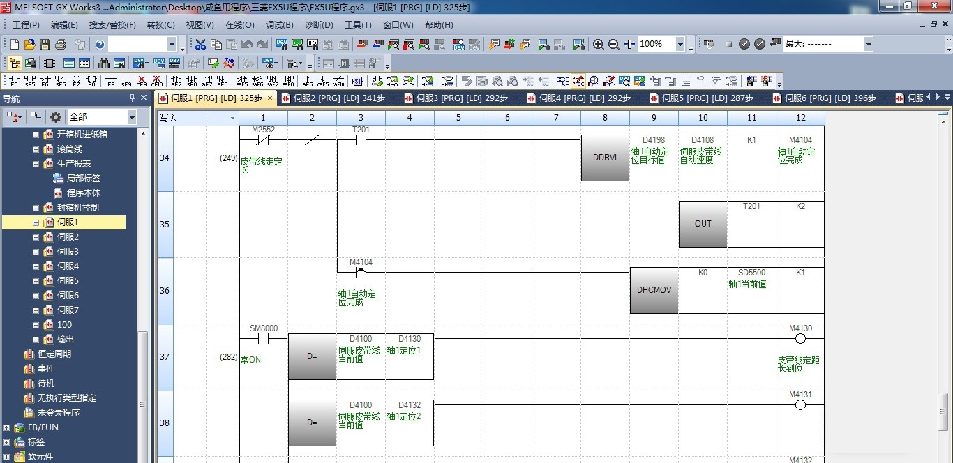 三菱FX5U七轴标准程序,包含轴点动,回零,相对与绝对定位,整个项目的模块都有:主控程序,复位程序,手动,生产计数,只要弄明白这个程序,就可以非常了解整个项目的程序如何去编写,从哪里开始下手,可提供程序问题解答,程序流程清晰明了;包含有触摸屏程序