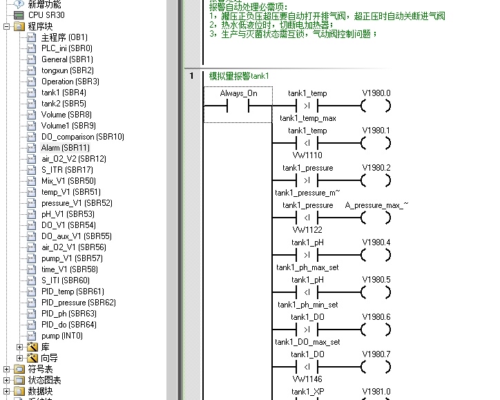 程序结构清晰,控制功能较多,包含模拟量,泵,PID,USS通讯等。