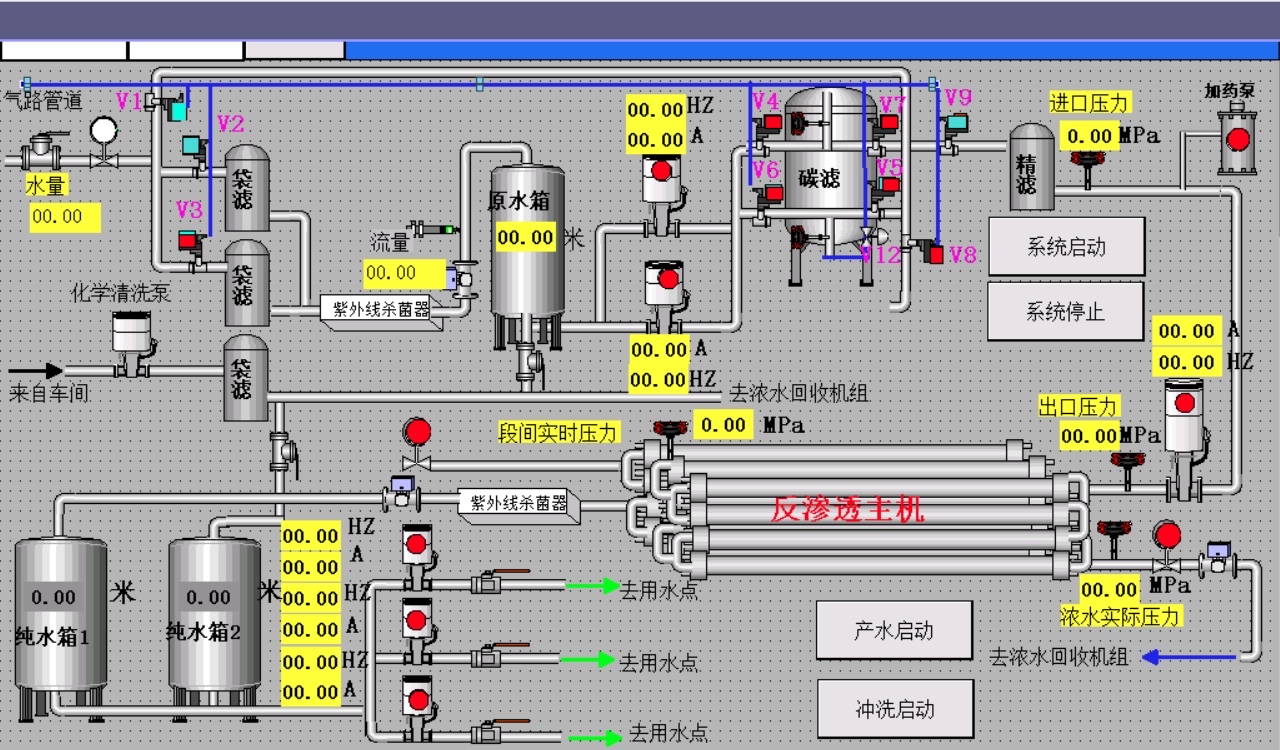 采用成熟、可靠、先进、自动化程度高的反渗透+精混床除盐水处理工艺,确保处理后的超纯水水质确保处理后出水电阻率达到18.2MΩ.cm, 高纯水制取设备关键设备及耗材采用国际主流先进可靠产品,采用PLC+触摸屏控制,全套系统自动化程度高,系统稳定性高