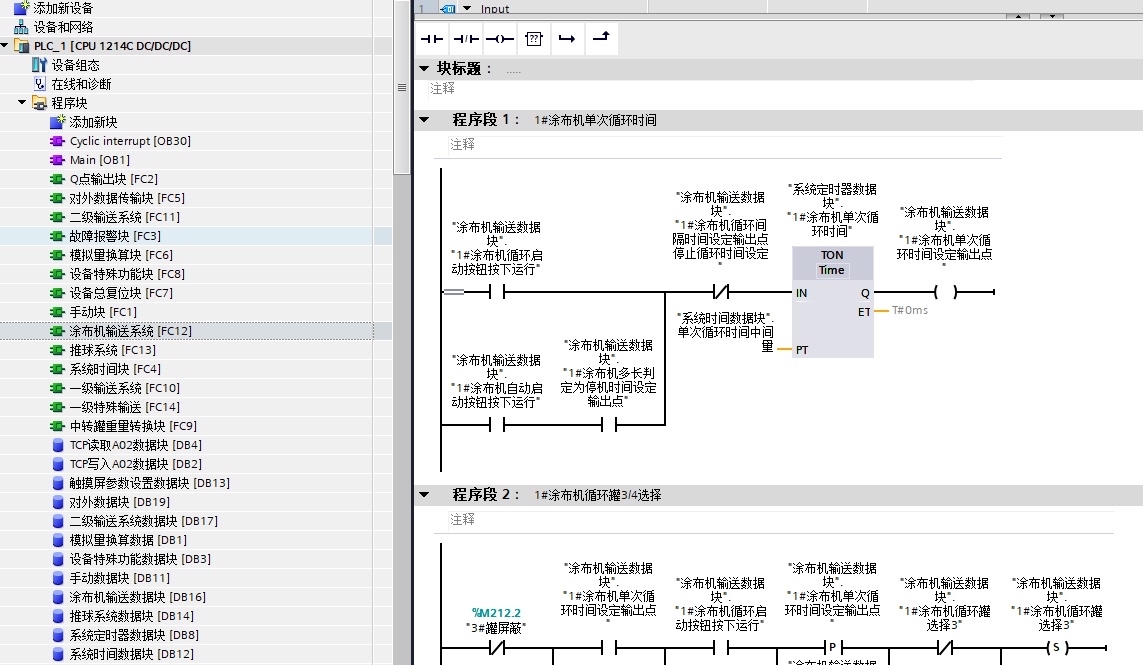 西门子1200博途阳级浆料输送系统程序案例,系统包括涂布机输送系统。