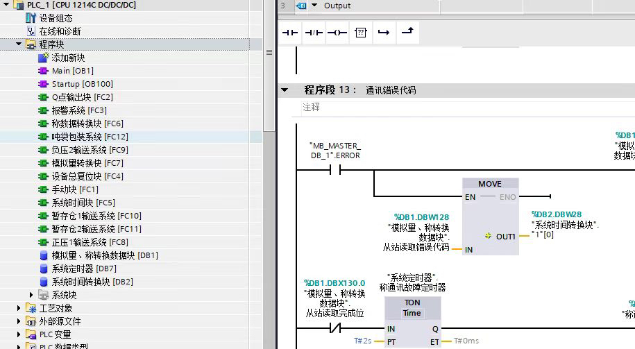 103-西门子1200博途物料输送系统程序案例,具体为新能源物料输送博图程序,西门子1200PLC和昆仑通态触摸屏上位软件,博图版本V16及以上,控制程序读取模拟量托利多称重仪表,采用RS485和称重仪表通讯,模拟量控制。