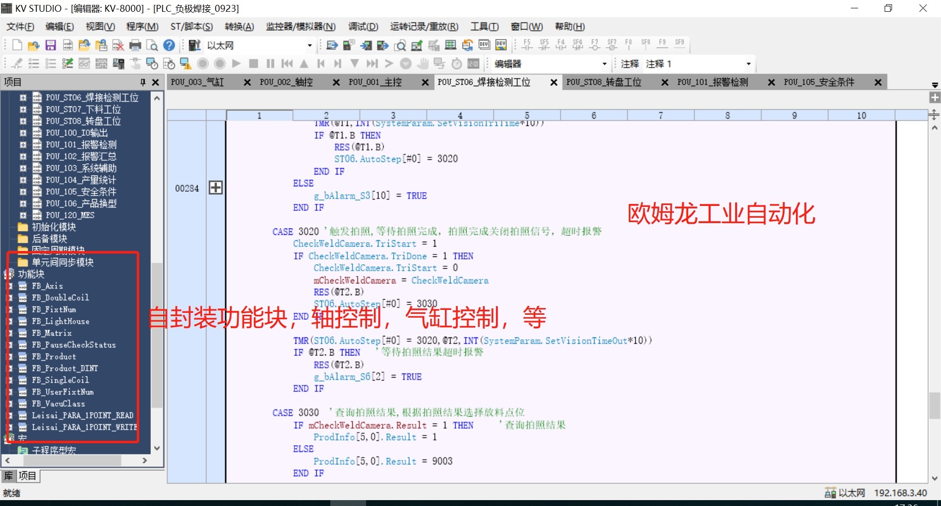 ST+梯形图+FB编写,昆仑通态触摸屏,注释齐全