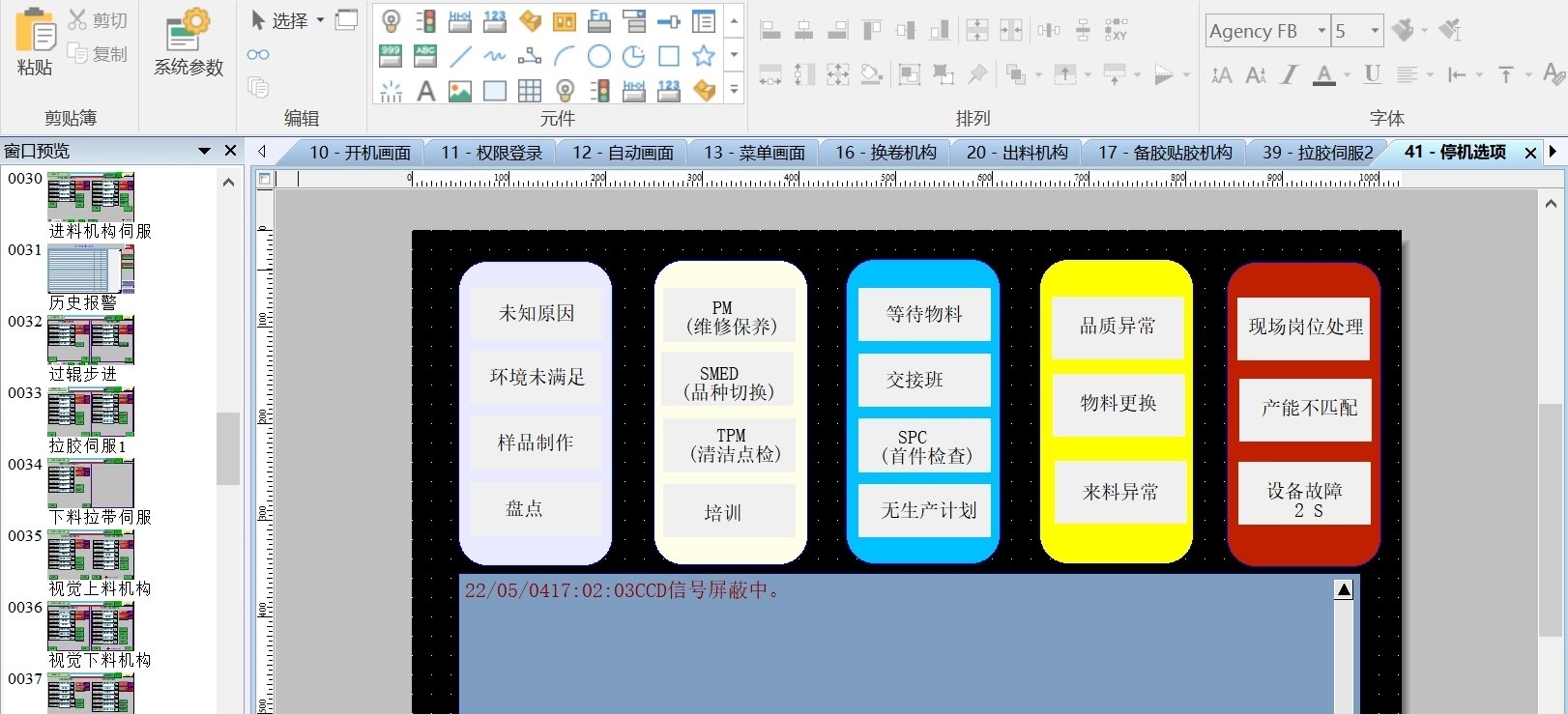 触摸屏产量统计功能,CATL标准设备故障点选表,触摸屏在线修改账号功能。