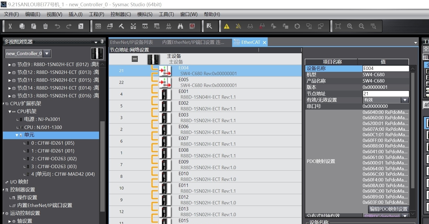 欧姆龙NJ501-1300,威伦通触摸屏,分布式总线控制,ID262.OD2663等输入输出IO模块,MAD模拟量模块。