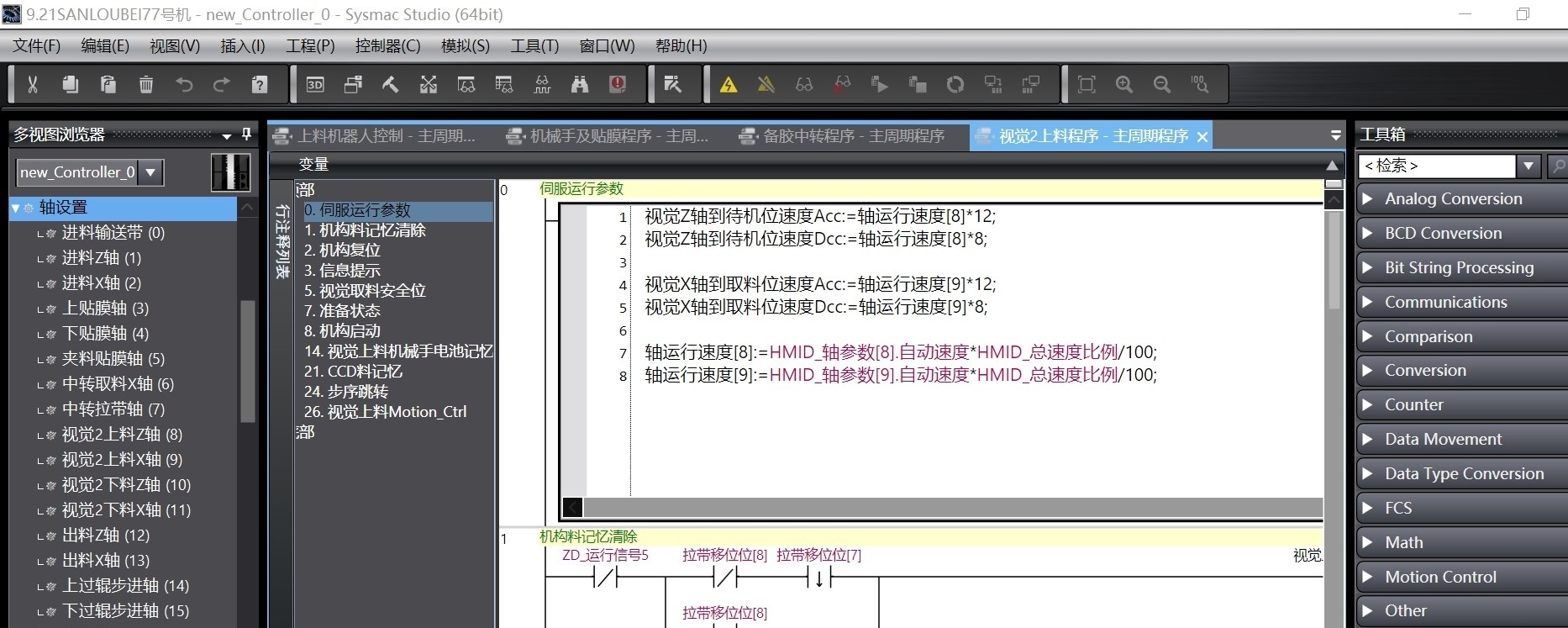 欧姆龙R88D-1S总线伺服,汇川机器人TCP/IP网络通信控制,CCD视觉位置控制,AD压力模拟量控制。