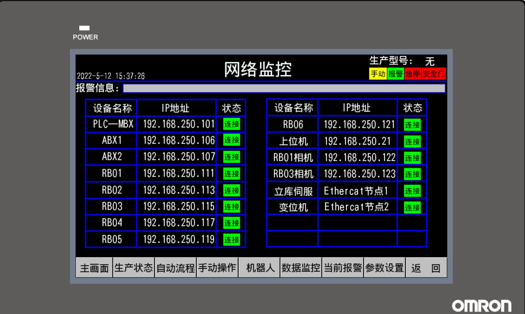 欧姆龙NJ501-1300,欧姆龙NB系列触摸屏,分布式总线控制,CJ1W-DRM21模块通信主从站控制。