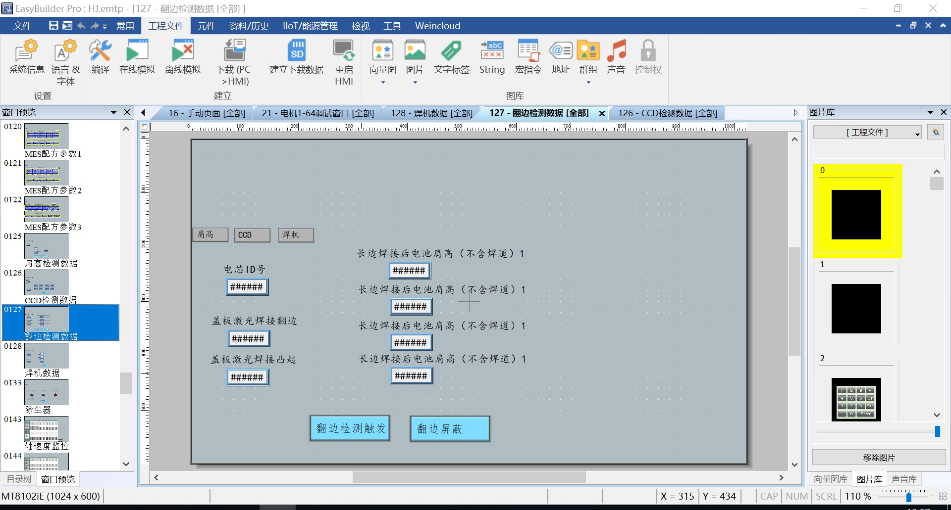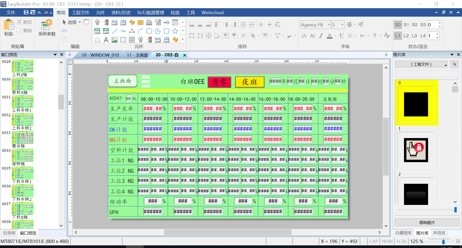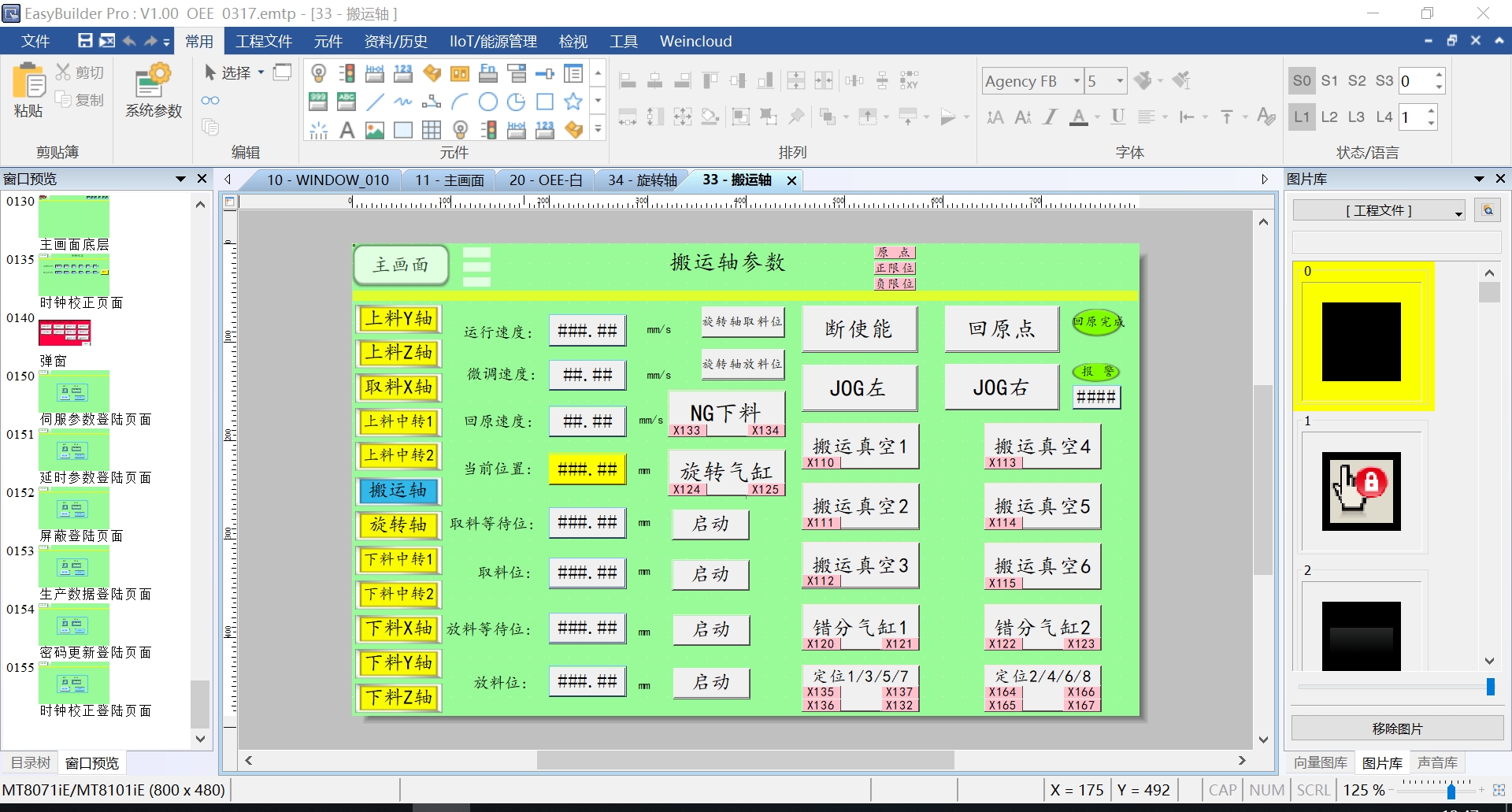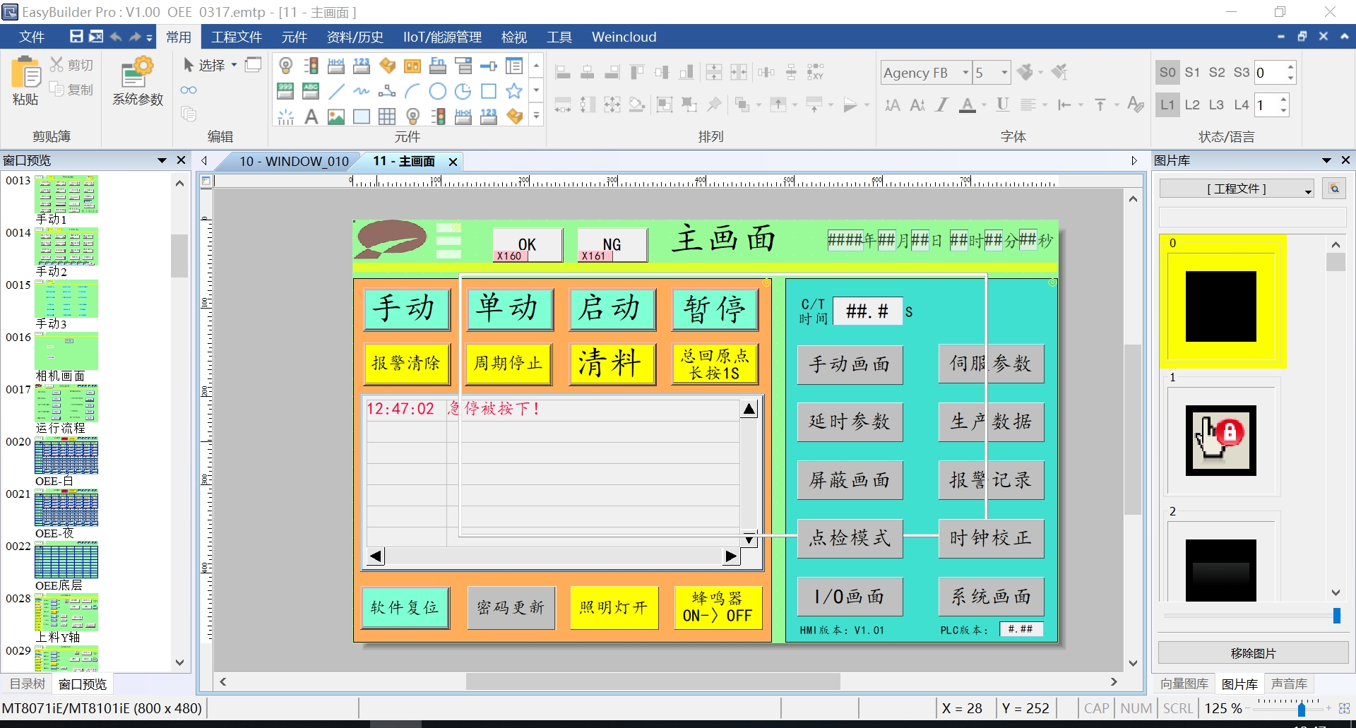 优秀的触摸屏模板,产量功能,设备稼动率,优率OEE等功能,一键清料程序,多用户管理功能,触摸屏宏指令与PLC进行数据交换程序,等