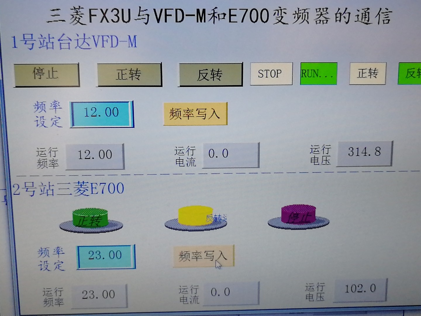 fx3u加485bd扩展板,从站一台使用台达VFD-M,一台使用三菱E700,可以分别控制正反转及停止,频率的设定,也可以实现运转数据及状态的监控,响应快,数据准确,其他变频器支持modbus rtu协议也可以的,有教程送。