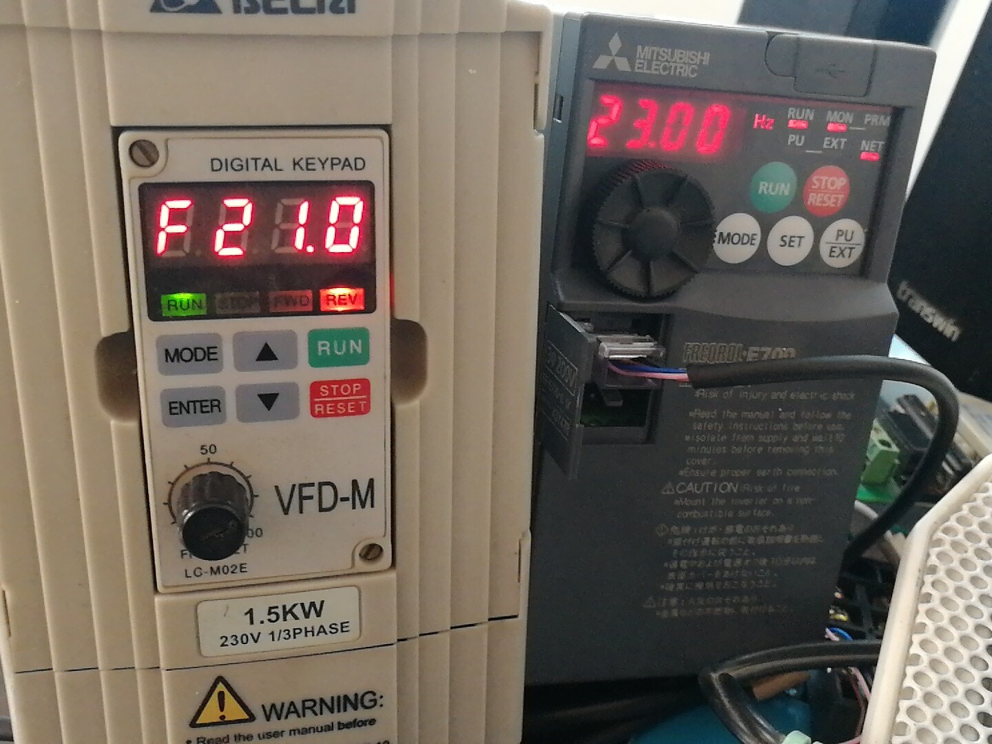 信捷触摸屏与两台变频器的通讯样例支持TH.TG.TE系列,一台使用三菱E700变频器,一台使用台达vfd-M变频器,