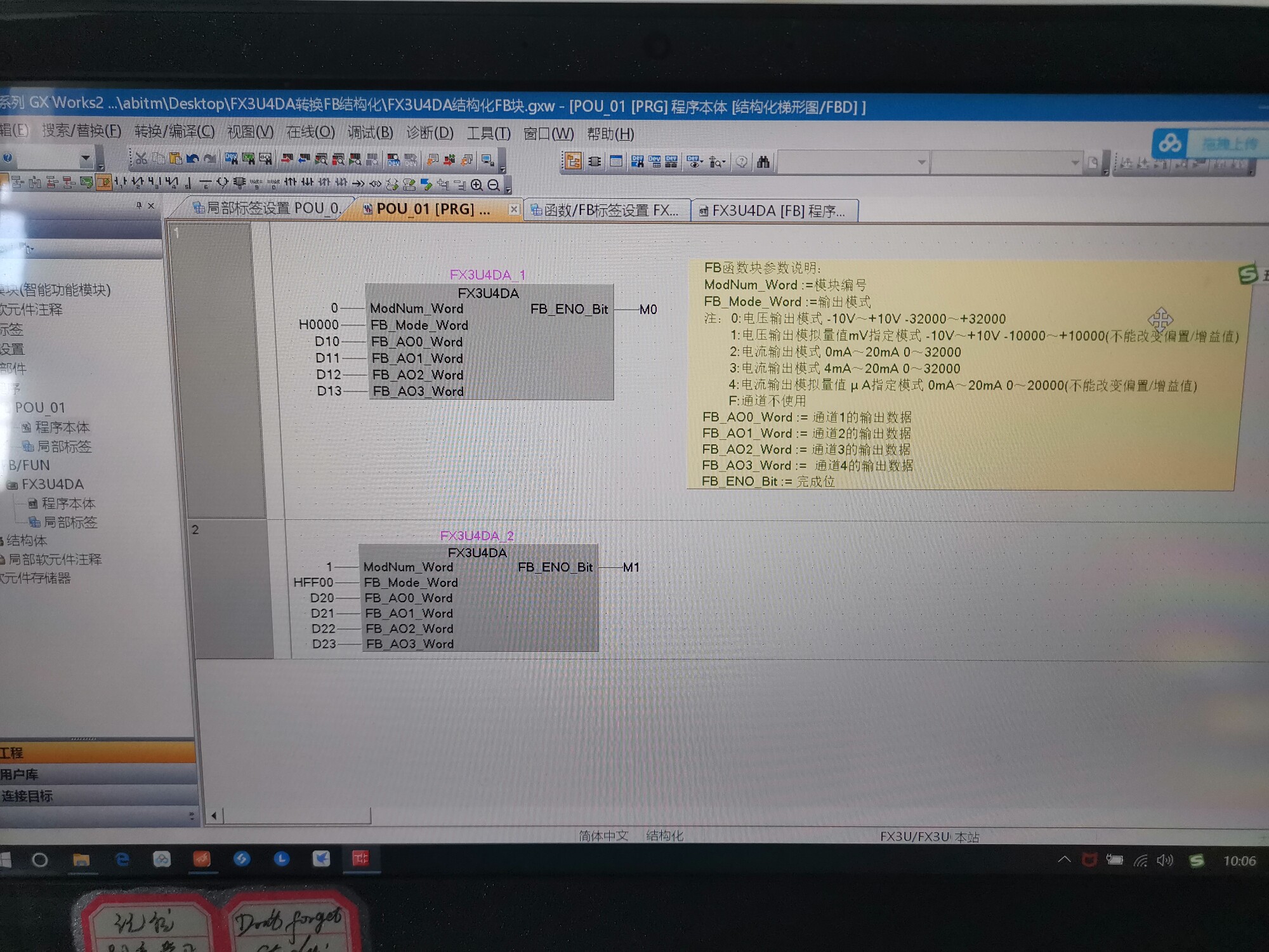 三菱FX3U4DA模拟量输出模块,使用ST结构化文本源代码制作的FB标准库文件,本人自己编写,上机测试正常,一
