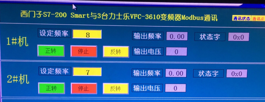 功能:实现频率设定,启停控制,实际频率读取等,状态读取指示