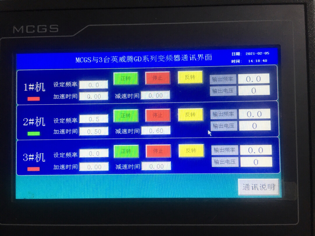 器件:昆仑通态触摸屏,3台西门子V20系列变频器,附送接线说明和设置说明