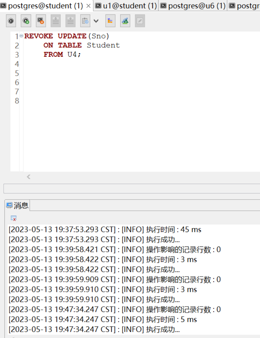 4.8 把用户U4修改学生学号的权限收回