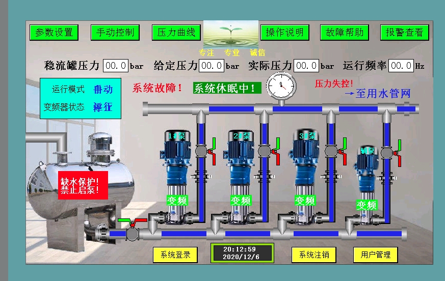 无负压供水变频一拖三(3+1)西门子触摸屏