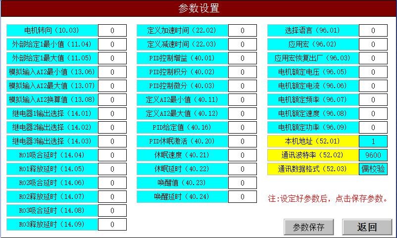 4.里面含有部分通讯协议,本程序只读取部分变频器参数,其他参数需要变频器调节;