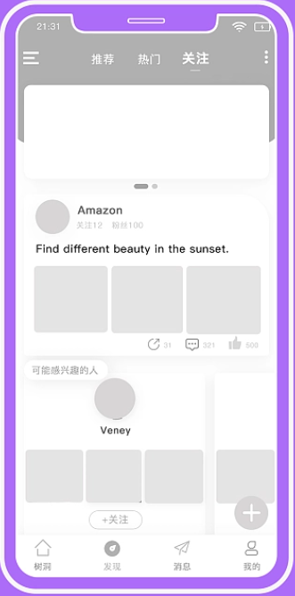 可以看出成品可以清晰完整的显示树洞APP的各大功能界面和作用,下面我将从制作过程详细解析墨刀的功能: