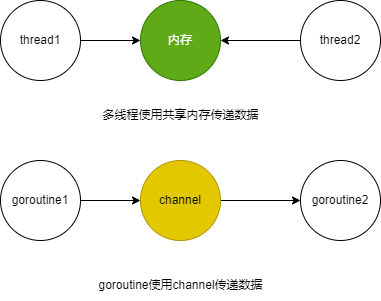 go语言中提倡:不要通过共享内存方式进行通信,而应该通过通信的方式共享内存。