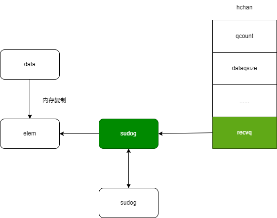 runtime.sudog表示一个在等待列表中的goroutine,该结构中存储了两个分别指向前后runtime.sudog的指针以构成链表。