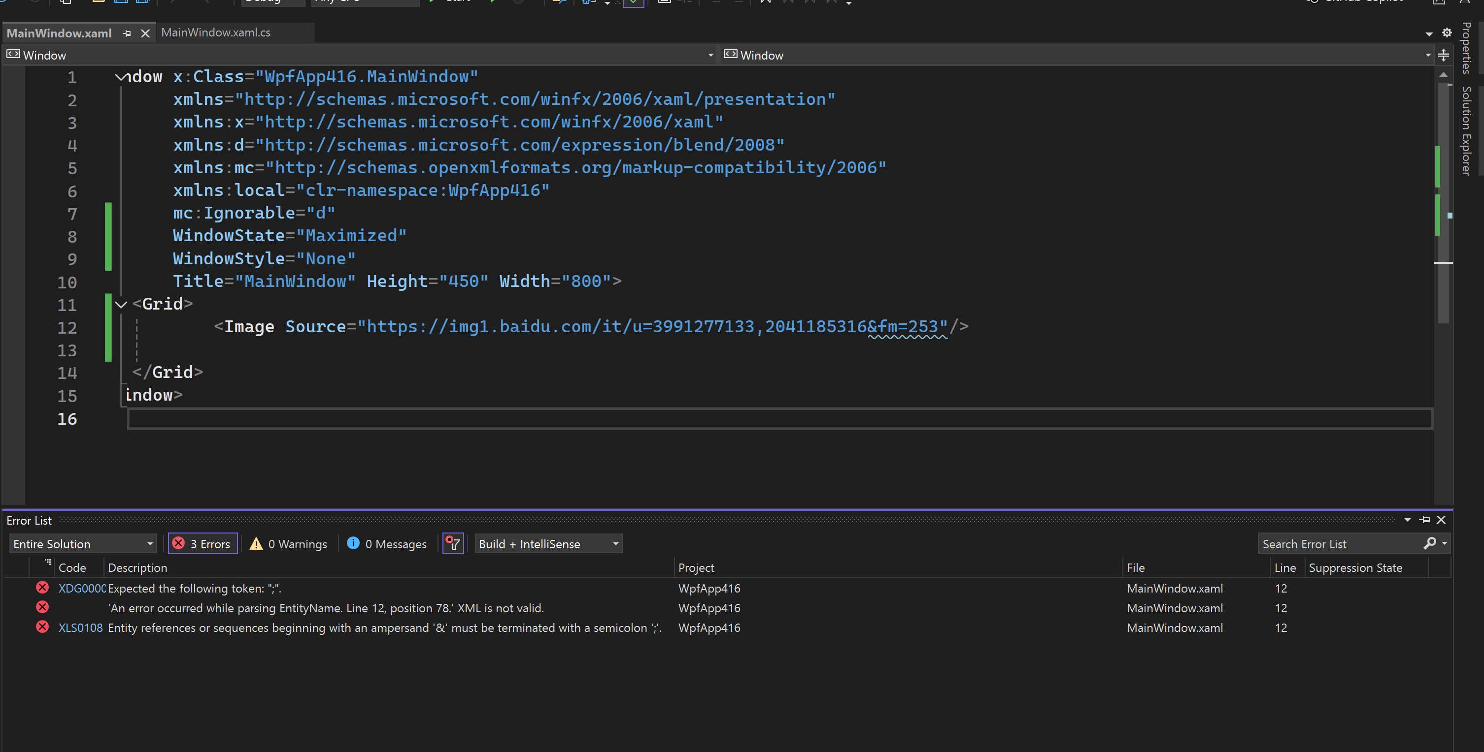 WPF Error XLS0108 Entity references or sequences beginning with an ampersand '&' must be terminated with a semicolon ';'