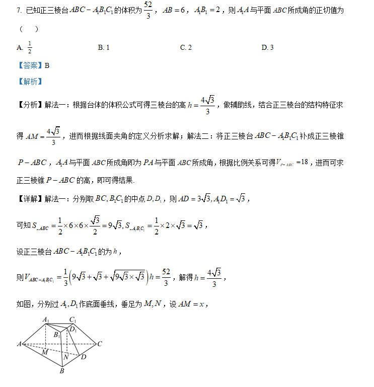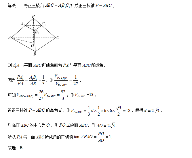 故该三棱台的表面积为 \(S=\sqrt{3}+4\sqrt{3}+3\times\sqrt{39}=5\sqrt{3}+3\sqrt{39}\),故选 \(A\) .