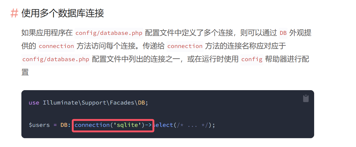 在尝试使用Laravel 11框架开发新项目时出现,查询不到数据表的情况,排除许久发现数据库配置没有问题,发现框架默认使用的是sqlite数据库,并未到Mysql数据库中查询表。