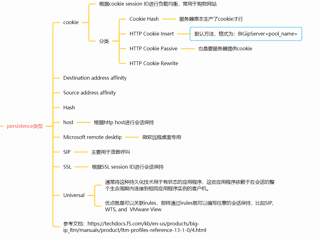 F5的persistence profile主要是在需要做会话保持的时候配置,比如购物网站之类的。根据官方文档,F5的persistence 类型如下图所示