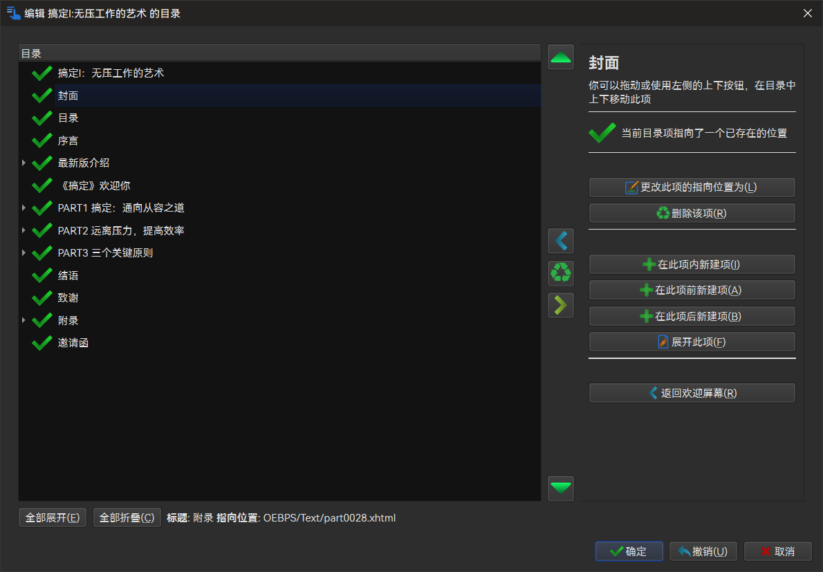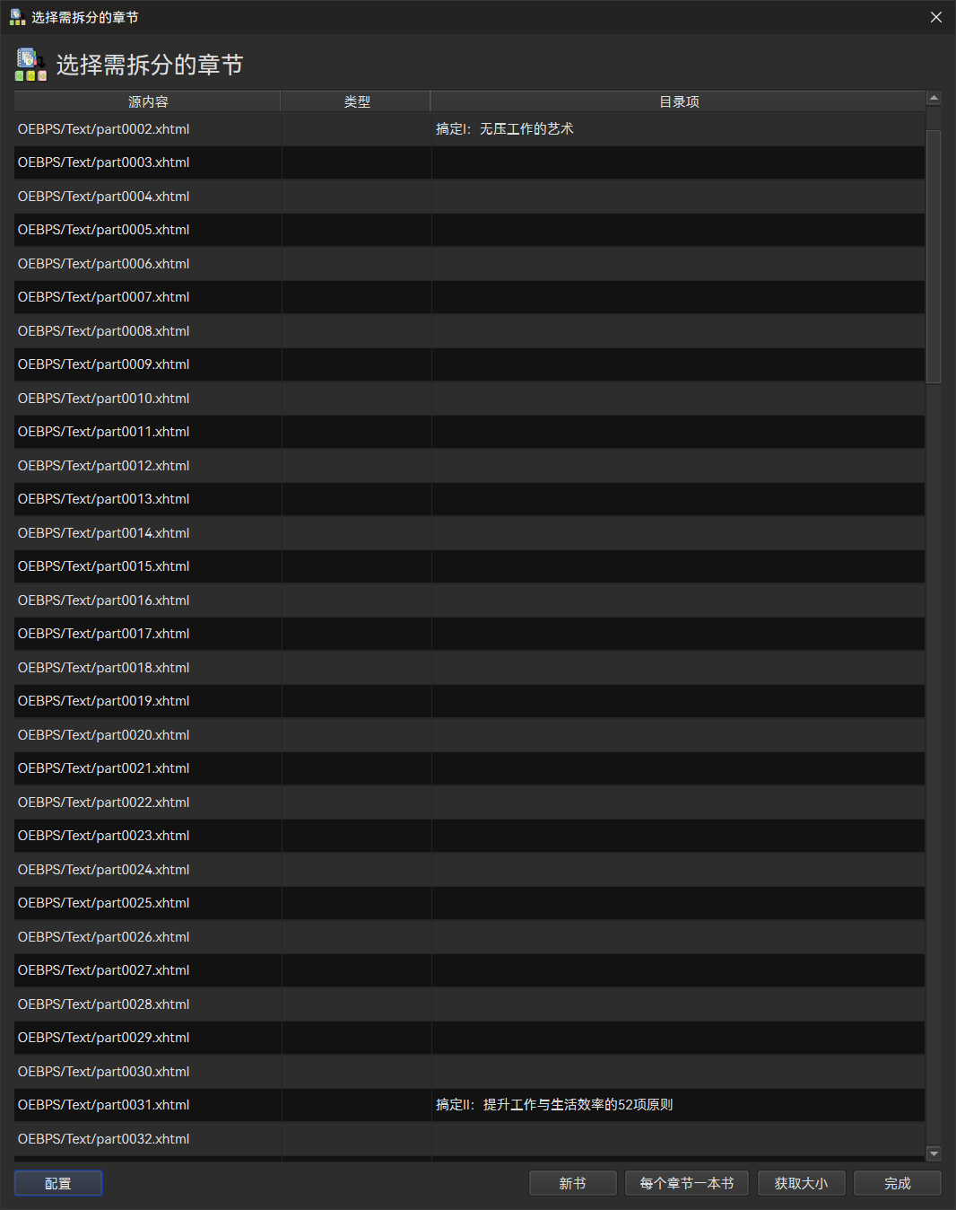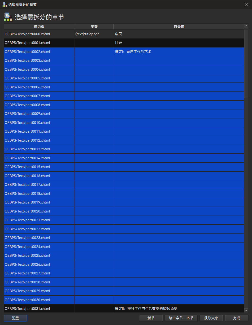 这样,就完成从合集中分割电子书,并且让新的电子书具有完整的元数据和目录。