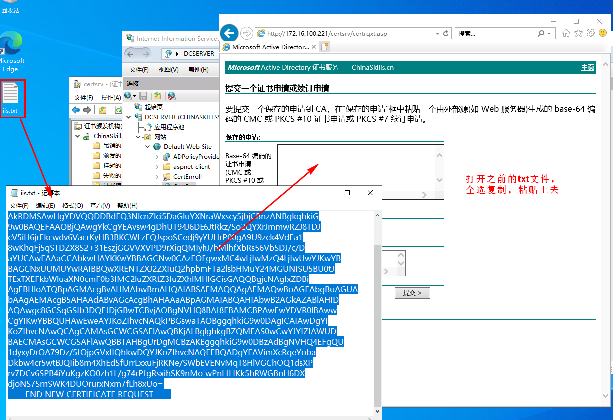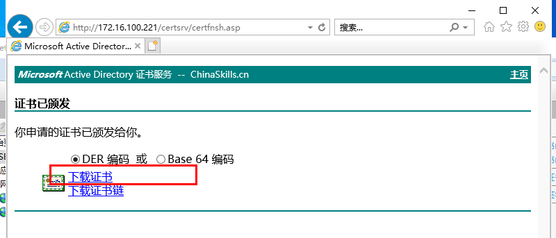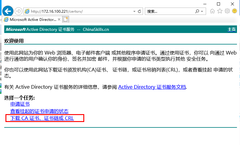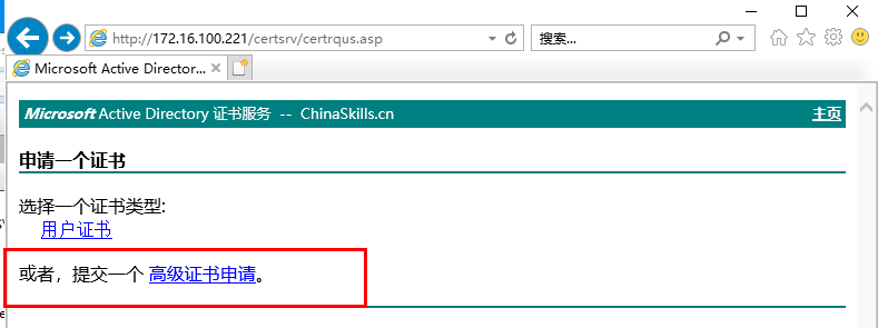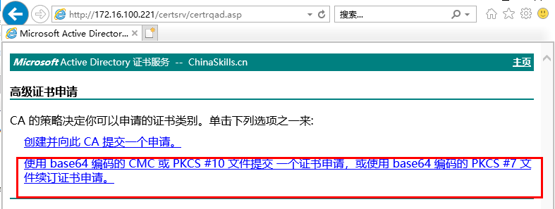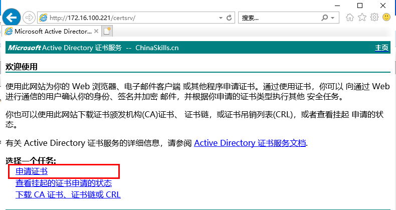 - 使用ie浏览器,输入http://CA服务器ip/certsrv申请证书