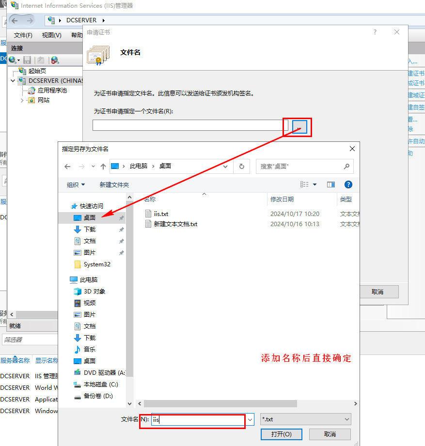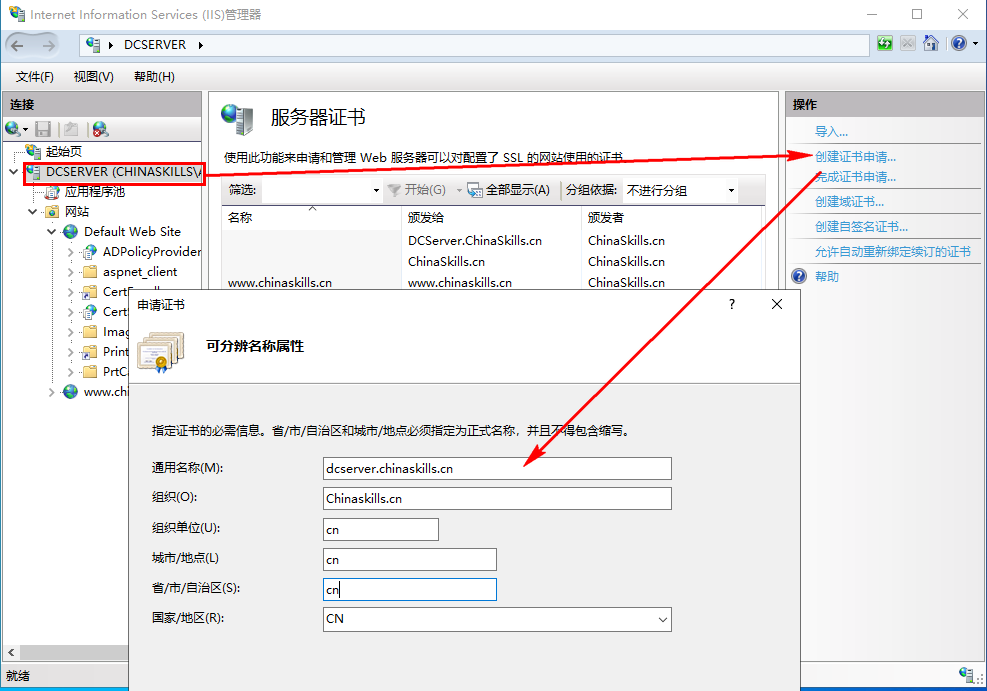 - 导入完成后创建网站和网站目录,注意网站名称一定要和证书申请的名称一致