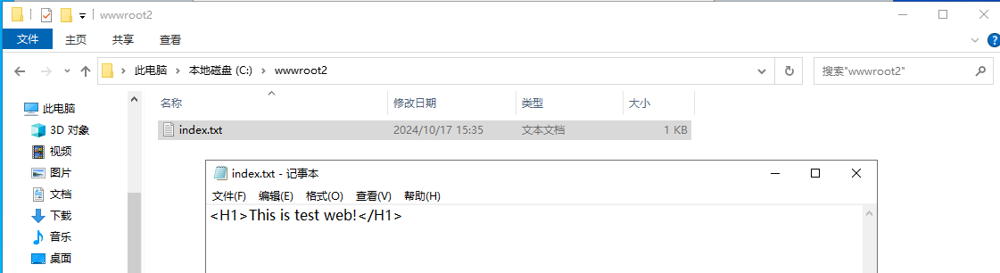 新建目录,在目录内新建index.txt文档,编辑内容后修改后缀名